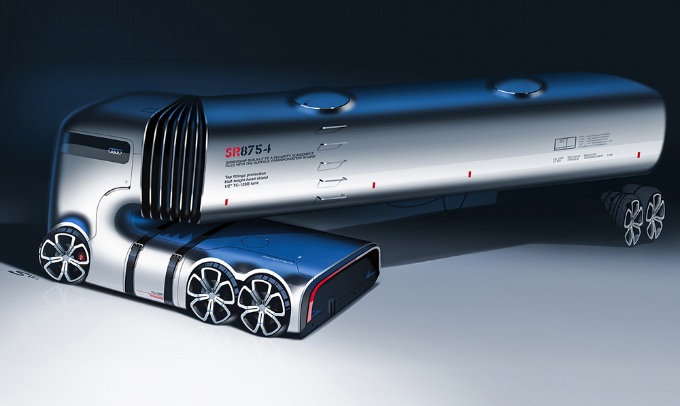 The duo behind this concept Artem Smirnov and Vladimir Panchenko said, “To develop Audi as an unmanned electric truck brand was their goal.” During the conceptual designing phase they decided to work on 2 directions: Direction A in which an unmanned, electric power driven truck was designed; Direction B is designing of truck show car with electric power driving mechanism.